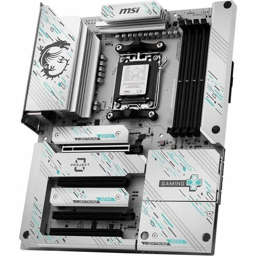 The B850 GAMING PLUS WIFI PZ is crafted to offer extensive connectivity, versatile tools, and a premium Wi-Fi solution for gamers seeking a comprehensive experience. Featuring full-speed Wi-Fi 7, 5G LAN, PCIe 5.0 solution, Supplemental PCIe Power and exclusive EZ DIY features, it is ready for 24/7 non-stop gaming optimized for AMD Ryzen™ 9000 series processors.